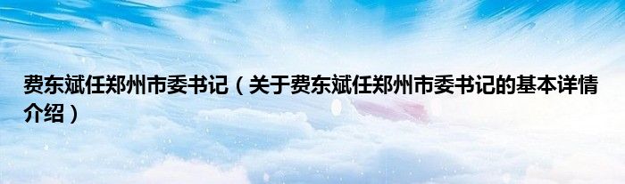 本文关于费东斌任郑州市委书记的基本详情介绍就讲解完毕,希望对大家有所帮助。