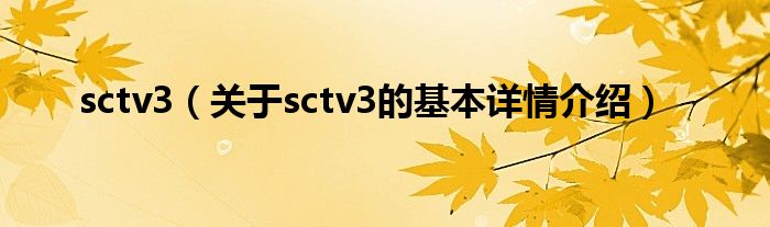 本文关于sctv3的基本详情介绍就讲解完毕,希望对大家有所帮助。
