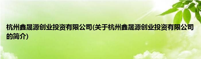 本文关于杭州鑫晟源创业投资有限公司的简介就讲解完毕,希望对大家有所帮助。