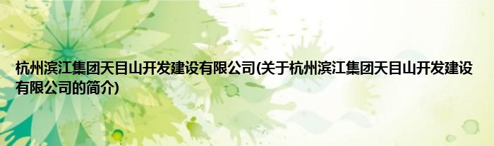大家好,杭州滨江集团天目山开发建设有限公司,关于杭州滨江集团天目山开发建设有限公司的简介很多人还不知道,现在让我们一起来看看吧!