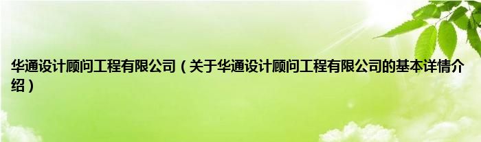 本文关于华通设计顾问工程有限公司的基本详情介绍就讲解完毕,希望对大家有所帮助。