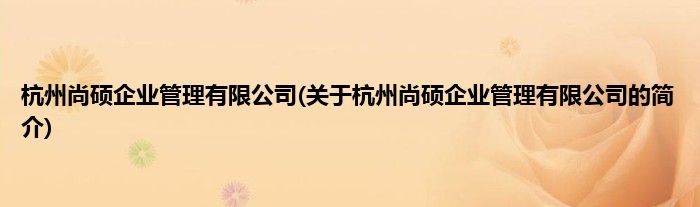 本文关于杭州尚硕企业管理有限公司的简介就讲解完毕,希望对大家有所帮助。