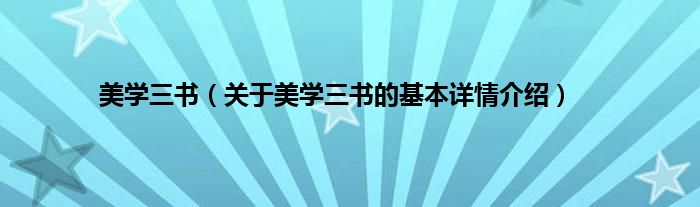 本文关于美学三书的基本详情介绍就讲解完毕,希望对大家有所帮助。