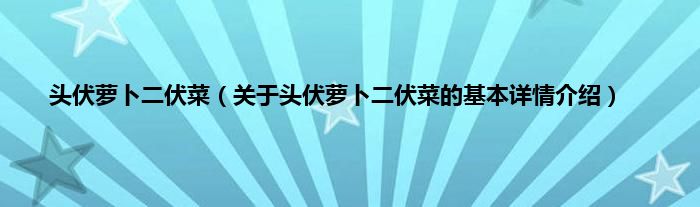 本文关于头伏萝卜二伏菜的基本详情介绍就讲解完毕,希望对大家有所帮助。