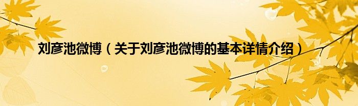 刘彦池微博(关于刘彦池微博的基本详情介绍)