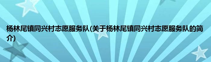 本文关于杨林尾镇同兴村志愿服务队的简介就讲解完毕,希望对大家有所帮助。