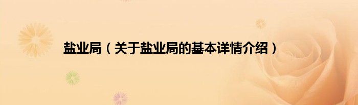本文关于盐业局的基本详情介绍就讲解完毕,希望对大家有所帮助。