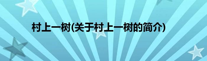 本文关于村上一树的简介就讲解完毕,希望对大家有所帮助。