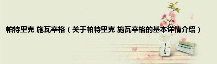 本文关于帕特里克 施瓦辛格的基本详情介绍就讲解完毕,希望对大家有所帮助。