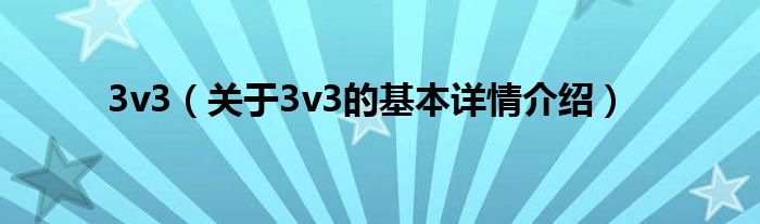 本文关于3v3的基本详情介绍就讲解完毕,希望对大家有所帮助。