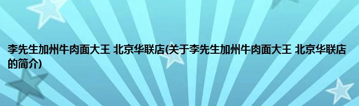 本文关于李先生加州牛肉面大王 北京华联店的简介就讲解完毕,希望对大家有所帮助。