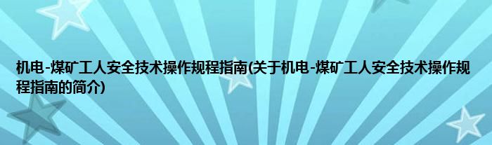 机电-煤矿工人安全技术操作规程指南(关于机电-煤矿工人安全技术操作规程指南的简介)