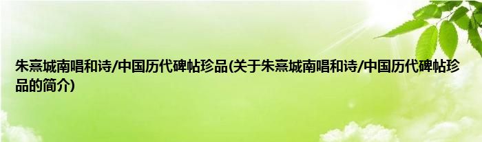 本文关于朱熹城南唱和诗/中国历代碑帖珍品的简介就讲解完毕,希望对大家有所帮助。
