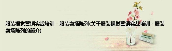 大家好,服装视觉营销实战培训:服装卖场陈列,关于服装视觉营销实战培训:服装卖场陈列的简介很多人还不知道,现在让我们一起来看看吧!