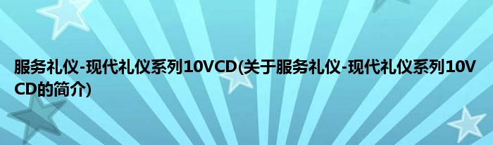 1、 《服务礼仪-现代礼仪系列10VCD》是2004年北大音像出版社出版的光碟套装。