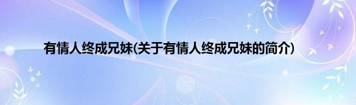 本文关于有情人终成兄妹的简介就讲解完毕,希望对大家有所帮助。