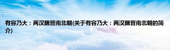 本文关于有容乃大:两汉魏晋南北朝的简介就讲解完毕,希望对大家有所帮助。