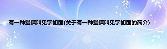 本文关于有一种爱情叫见字如面的简介就讲解完毕,希望对大家有所帮助。