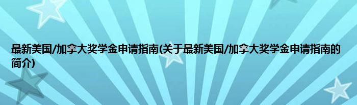 本文关于最新美国/加拿大奖学金申请指南的简介就讲解完毕,希望对大家有所帮助。