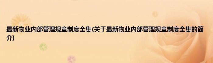 最新物业内部管理规章制度全集(关于最新物业内部管理规章制度全集的简介)