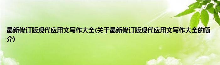 本文关于最新修订版现代应用文写作大全的简介就讲解完毕,希望对大家有所帮助。
