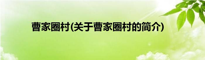 本文关于曹家圈村的简介就讲解完毕,希望对大家有所帮助。