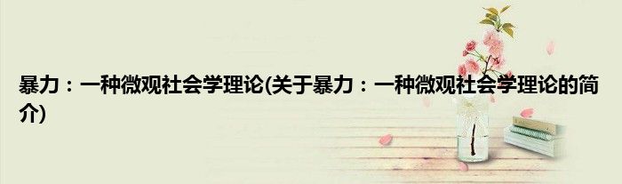本文关于暴力:一种微观社会学理论的简介就讲解完毕,希望对大家有所帮助。