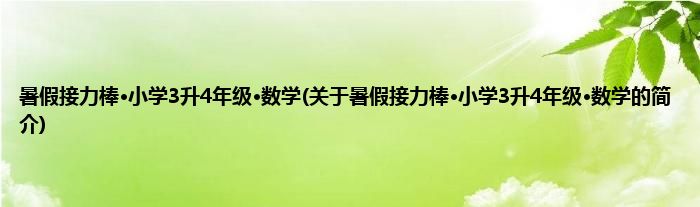 大家好,暑假接力棒·小学3升4年级·数学,关于暑假接力棒·小学3升4年级·数学的简介很多人还不知道,现在让我们一起来看看吧!
