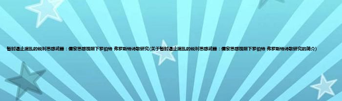 本文关于暂时遏止混乱的锐利思想武器:儒家思想观照下罗伯特。弗罗斯特诗歌研究的简介就讲解完毕,希望对大家有所帮助。