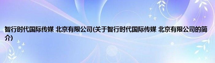 本文关于智行时代国际传媒 北京有限公司的简介就讲解完毕,希望对大家有所帮助。