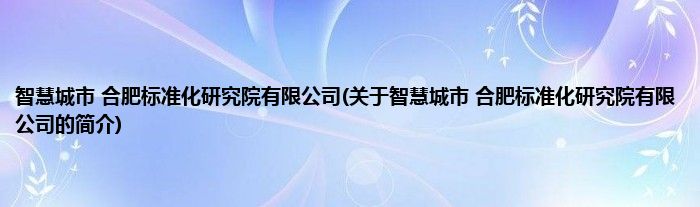 智慧城市 合肥标准化研究院有限公司(关于智慧城市 合肥标准化研究院有限公司的简介)
