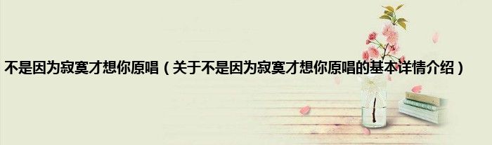 本文关于不是因为寂寞才想你原唱的基本详情介绍就讲解完毕,希望对大家有所帮助。