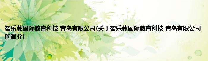智乐蒙国际教育科技 青岛有限公司(关于智乐蒙国际教育科技 青岛有限公司的简介)