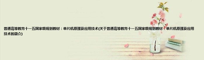 大家好,普通高等教育十一五国家级规划教材:单片机原理及应用技术,关于普通高等教育十一五国家级规划教材:单片机原理及应用技术的简介很多人还不知道,现在让我们一起来看看吧!