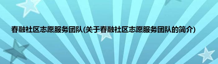 大家好,春融社区志愿服务团队,关于春融社区志愿服务团队的简介很多人还不知道,现在让我们一起来看看吧!