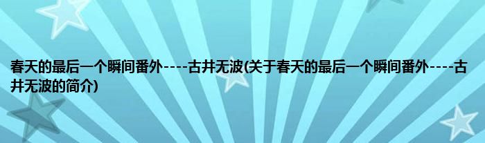 本文关于春天的最后一个瞬间番外----古井无波的简介就讲解完毕,希望对大家有所帮助。