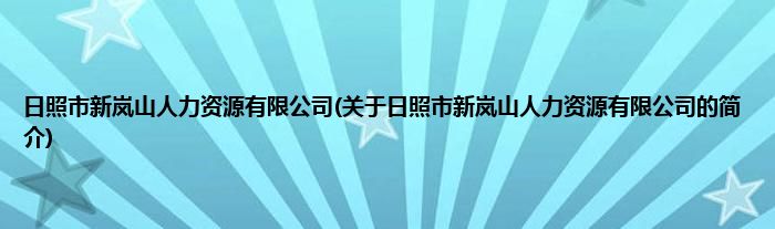 本文关于日照市新岚山人力资源有限公司的简介就讲解完毕,希望对大家有所帮助。