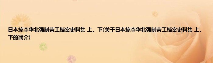 本文关于日本掠夺华北强制劳工档案史料集 上、下的简介就讲解完毕,希望对大家有所帮助。