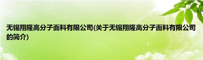本文关于无锡翔隆高分子面料有限公司的简介就讲解完毕,希望对大家有所帮助。