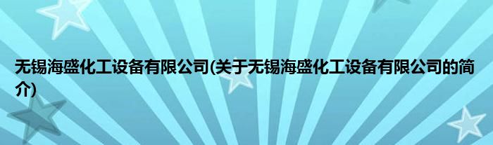 本文关于无锡海盛化工设备有限公司的简介就讲解完毕,希望对大家有所帮助。
