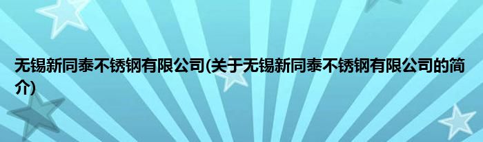 本文关于无锡新同泰不锈钢有限公司的简介就讲解完毕,希望对大家有所帮助。
