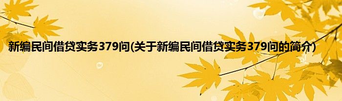 本文关于新编民间借贷实务379问的简介就讲解完毕,希望对大家有所帮助。