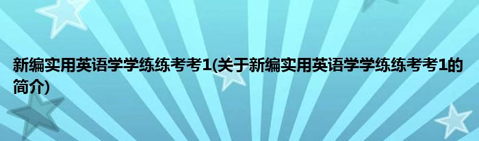 大家好,新编实用英语学学练练考考1,关于新编实用英语学学练练考考1的简介很多人还不知道,现在让我们一起来看看吧!
