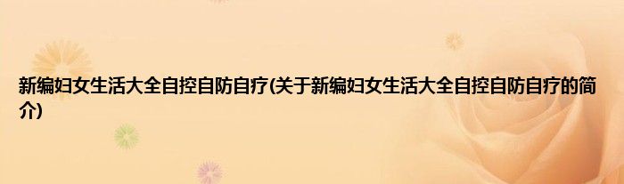 本文关于新编妇女生活大全自控自防自疗的简介就讲解完毕,希望对大家有所帮助。