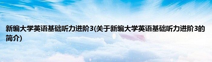 本文关于新编大学英语基础听力进阶3的简介就讲解完毕,希望对大家有所帮助。