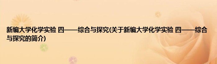 本文关于新编大学化学实验 四——综合与探究的简介就讲解完毕,希望对大家有所帮助。