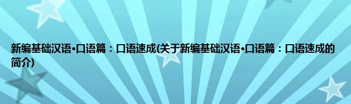 新编基础汉语·口语篇:口语速成(关于新编基础汉语·口语篇:口语速成的简介)