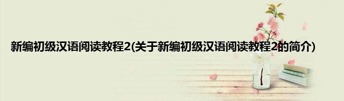 本文关于新编初级汉语阅读教程2的简介就讲解完毕,希望对大家有所帮助。