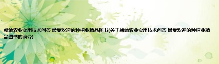 本文关于新编农业实用技术问答 最受欢迎的种植业精品图书的简介就讲解完毕,希望对大家有所帮助。