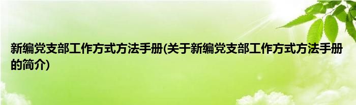 本文关于新编党支部工作方式方法手册的简介就讲解完毕,希望对大家有所帮助。